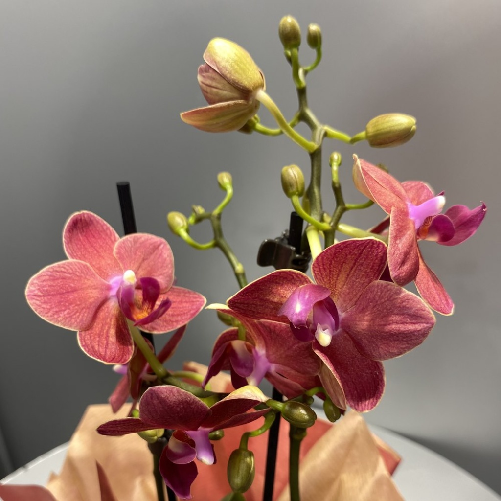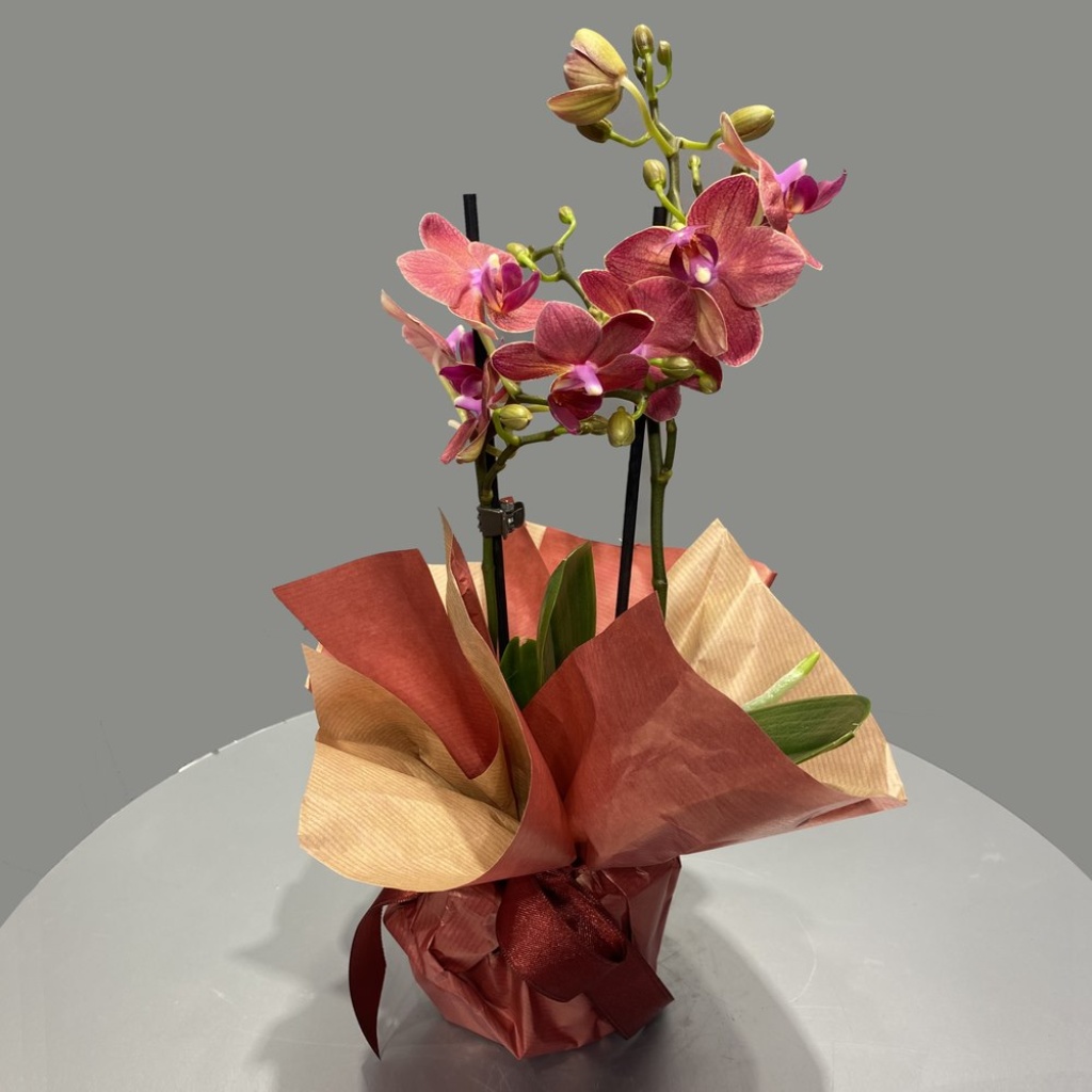 ÇİFT DAL KOYU TURUNCU ORKİDE (CANLI BİTKİ)