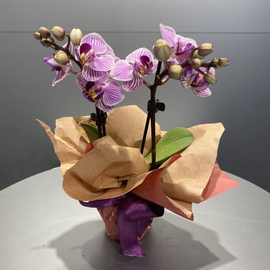 ÇİFT DAL MOR ÇİZGİLİ ORKİDE (CANLI BİTKİ)