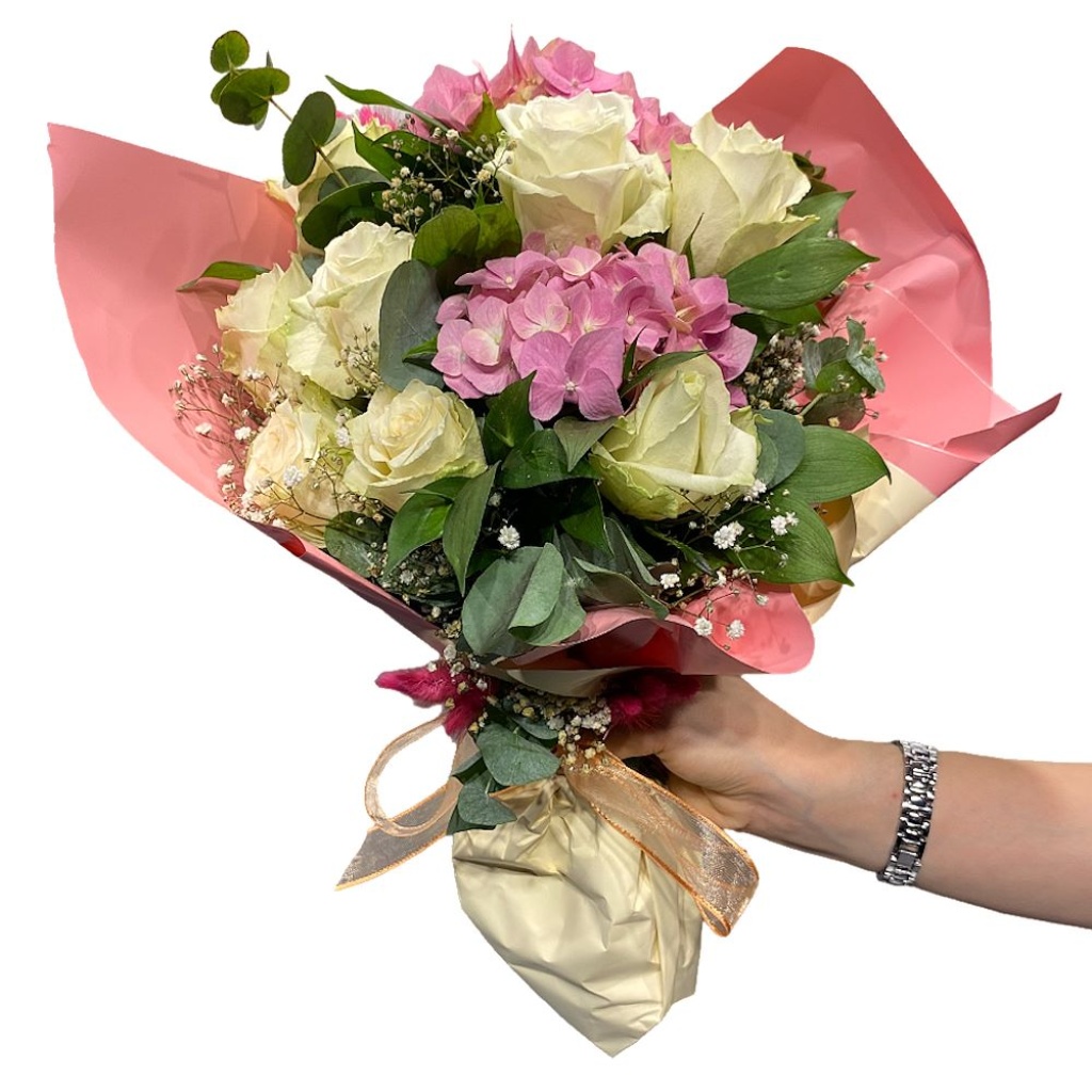 Gül ve ortanca armonisi buketi, romantik bir jest, sevgiliye veya özel birine sunulan anlamlı bir hediye veya herhangi bir özel kutlama için mükemmel bir seçenektir. Buket, duygusal bir bağlantı kurmak ve sevginizi ifade etmek istediğiniz herhangi bir durumu taçlandırmak için tasarlanmıştır.