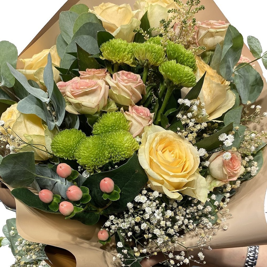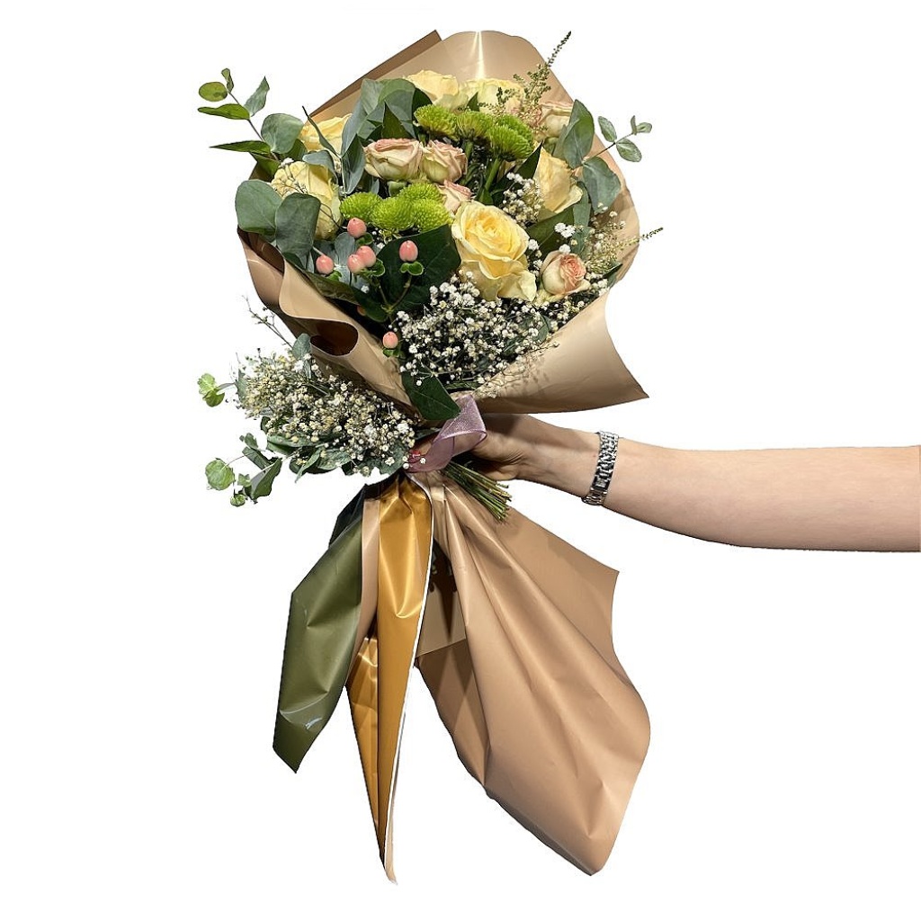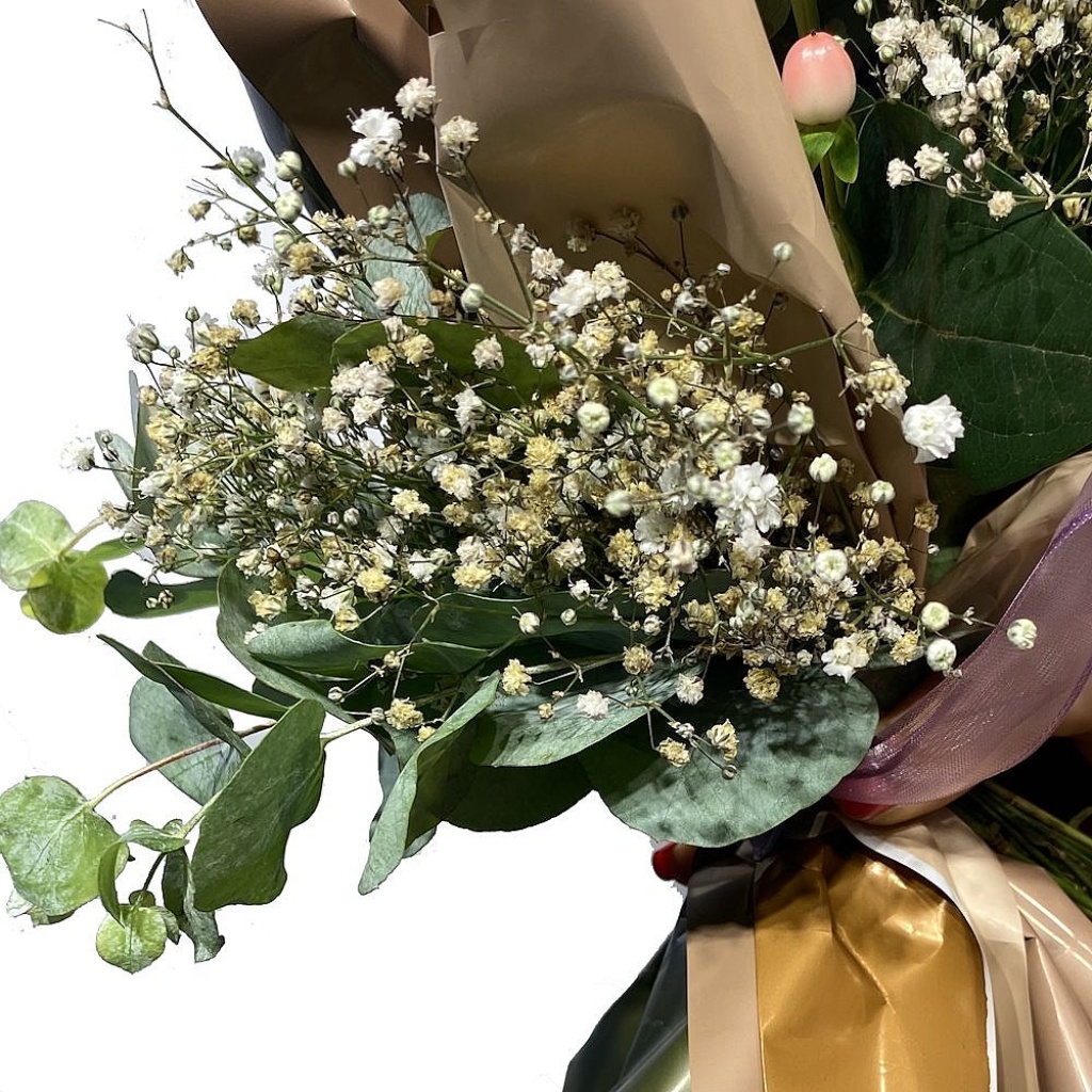 "Güneşin buketi", sıcaklığı, canlılığı ve neşeyi temsil eden güzel bir isimdir. Bu buket, sarı, yeşil ve pembe renklerin birleşimiyle güneşin ışıltısını yansıtır.
