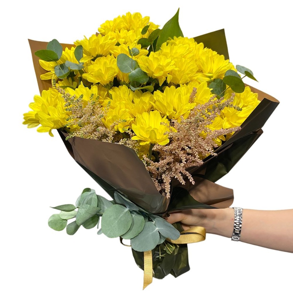 Buket içerisindeki krizantem sayısı ve rengi hariç yan ürünler değişiklik gösterebilir.