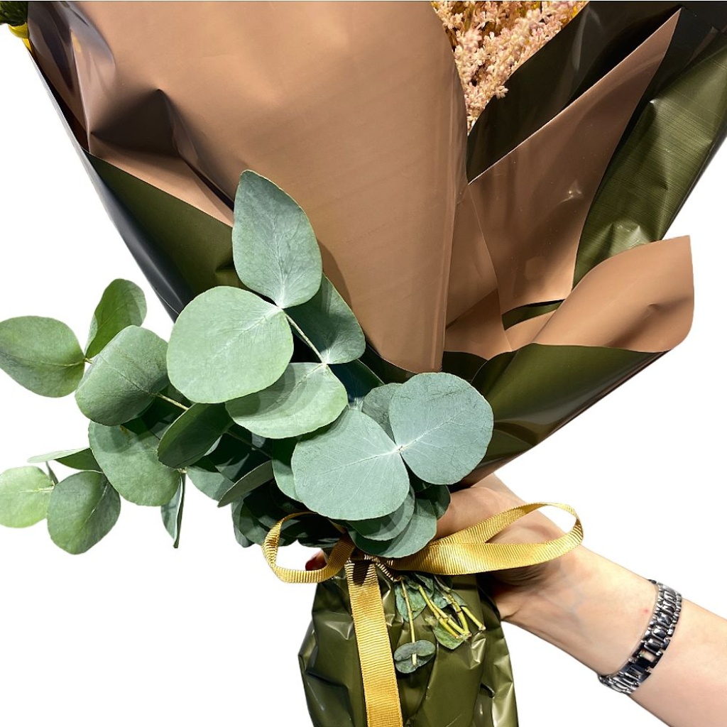 Sarı bahar buketi, evinize veya ofisinize de baharın canlılığını getirir. Bu canlı ve neşeli buket, yaşam alanınıza enerji ve canlılık katarken, aynı zamanda ortama pozitif bir hava katar.