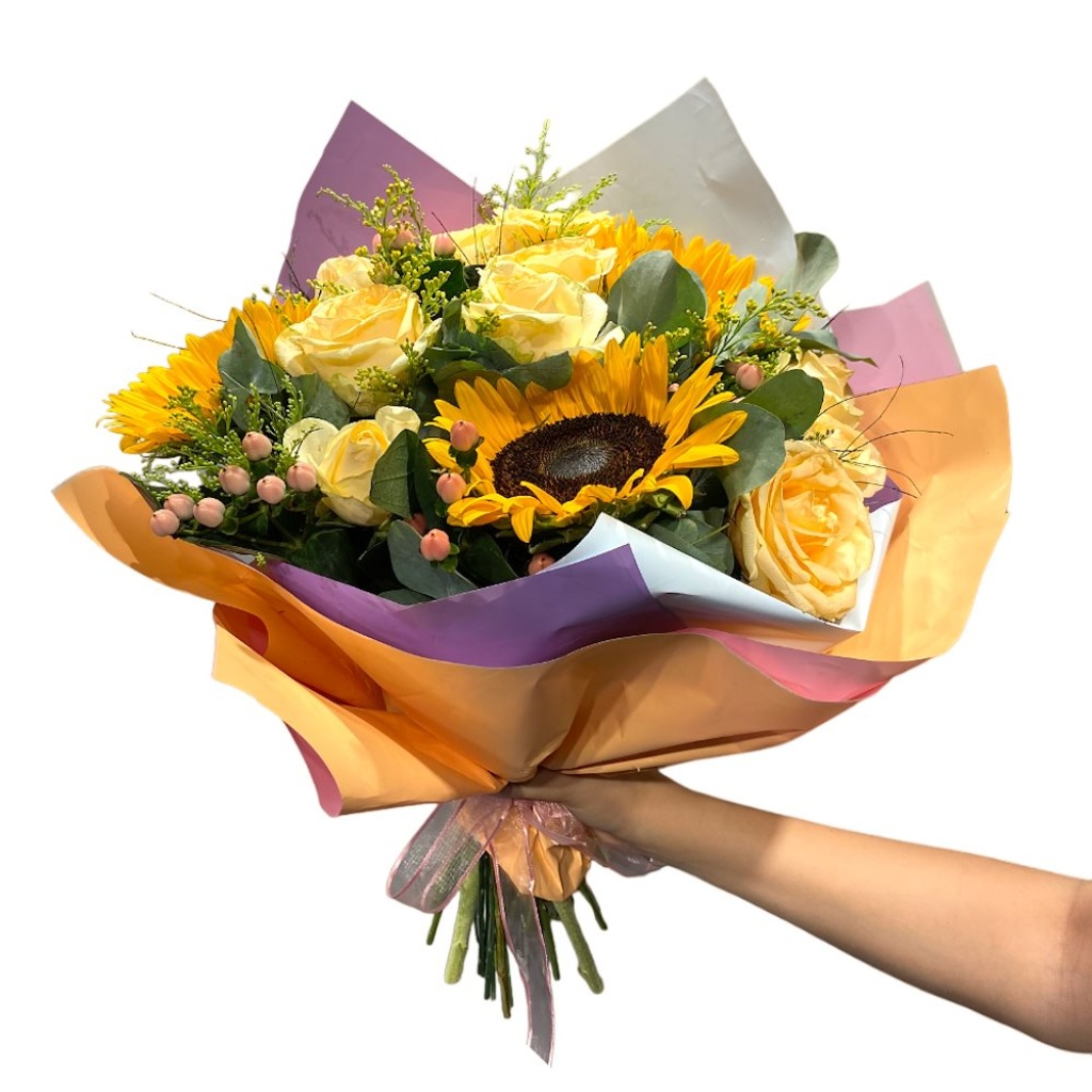 Buket içerisindeki gül, ayçiçeği sayısı ve rengi hariç yan ürünler değişiklik gösterebilir.
