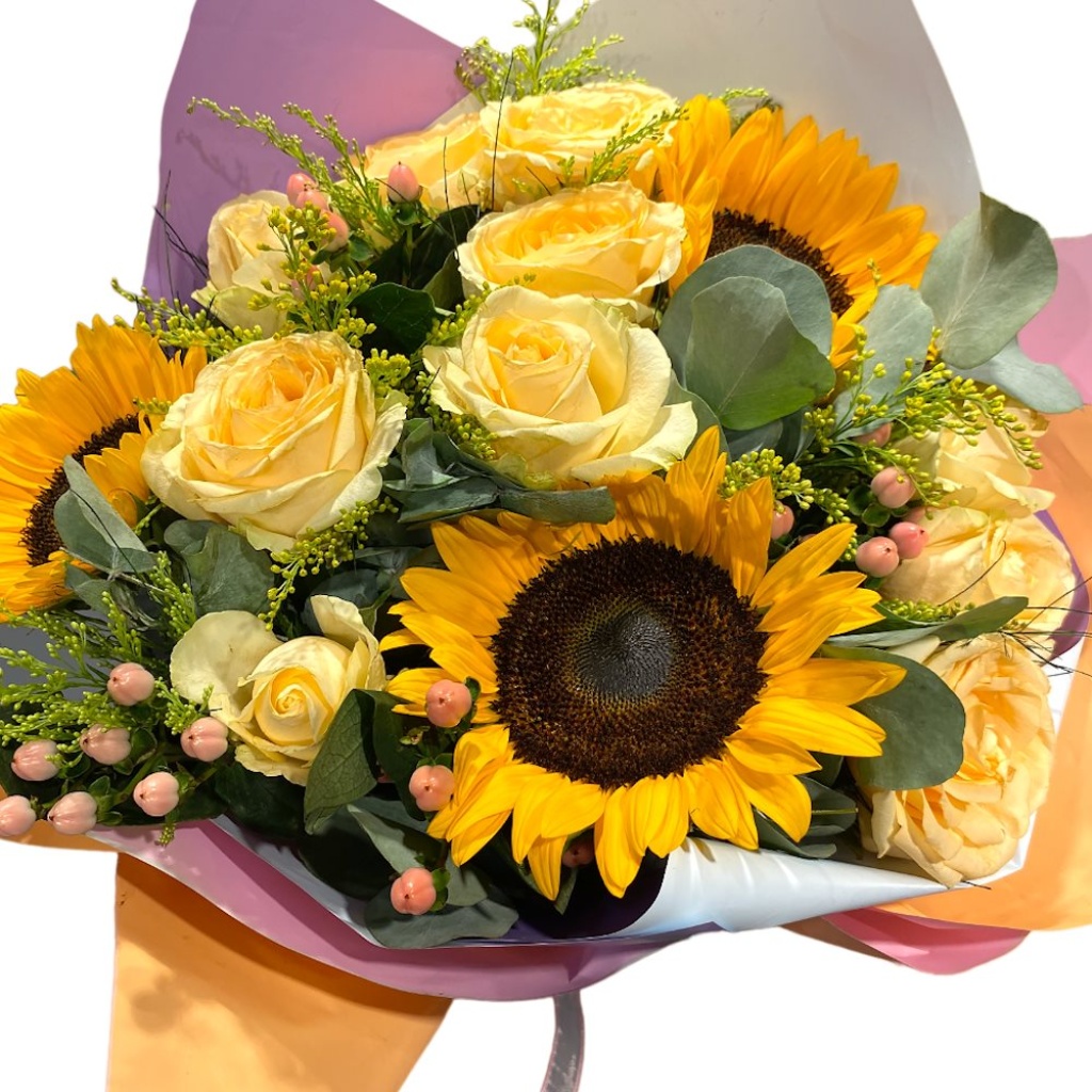Hoş geldiniz! Sizlere baharın ve yazın enerjisini taşıyan muhteşem bir çiçek buketi sunuyoruz: Sevgi Dolu Güneş Buketi! Bu zarif buket, içerisindeki özel çiçeklerle sevdiklerinizi mutlu etmek ve onlara güneş gibi ışık saçmak için tasarlandı.