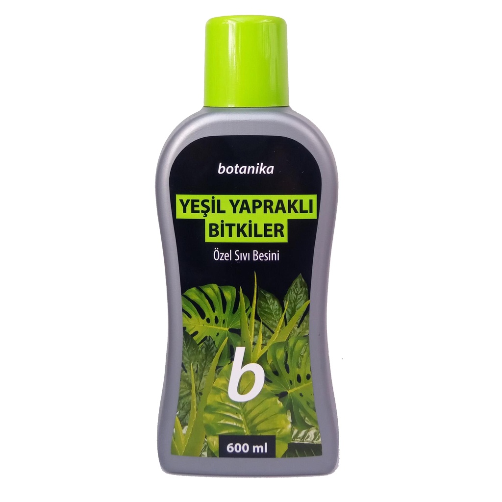 BİTKİ BESİNİ YEŞİL YAPRAKLI BİTKİLERBotanika 600 ml Yeşil Yapraklı Bitkiler İçin Bitki Besini. Yeşil yapraklı bitkiler için özel hazırlanmış olan sıvı bitki besini ile bitkileriniz solmasın. Güzel ve estetik görünümlü yaprakları için yetiştirdiğiniz yeşil yapraklı iç mekan bitkilerinin tüm besin gereksinimlerine cevap verecek olan bu ürün, yeterli miktarlarda azot, fosfor ve potas içeriği sayesinde bu elementlerin tüm bitkiye kesintisiz olarak ulaşmasını sağlamaktır.Ürün yalnız bitkiler için kullanılmalıdır.İçilmez.Çocukların ulaşamayacağı bir yerde saklayın.